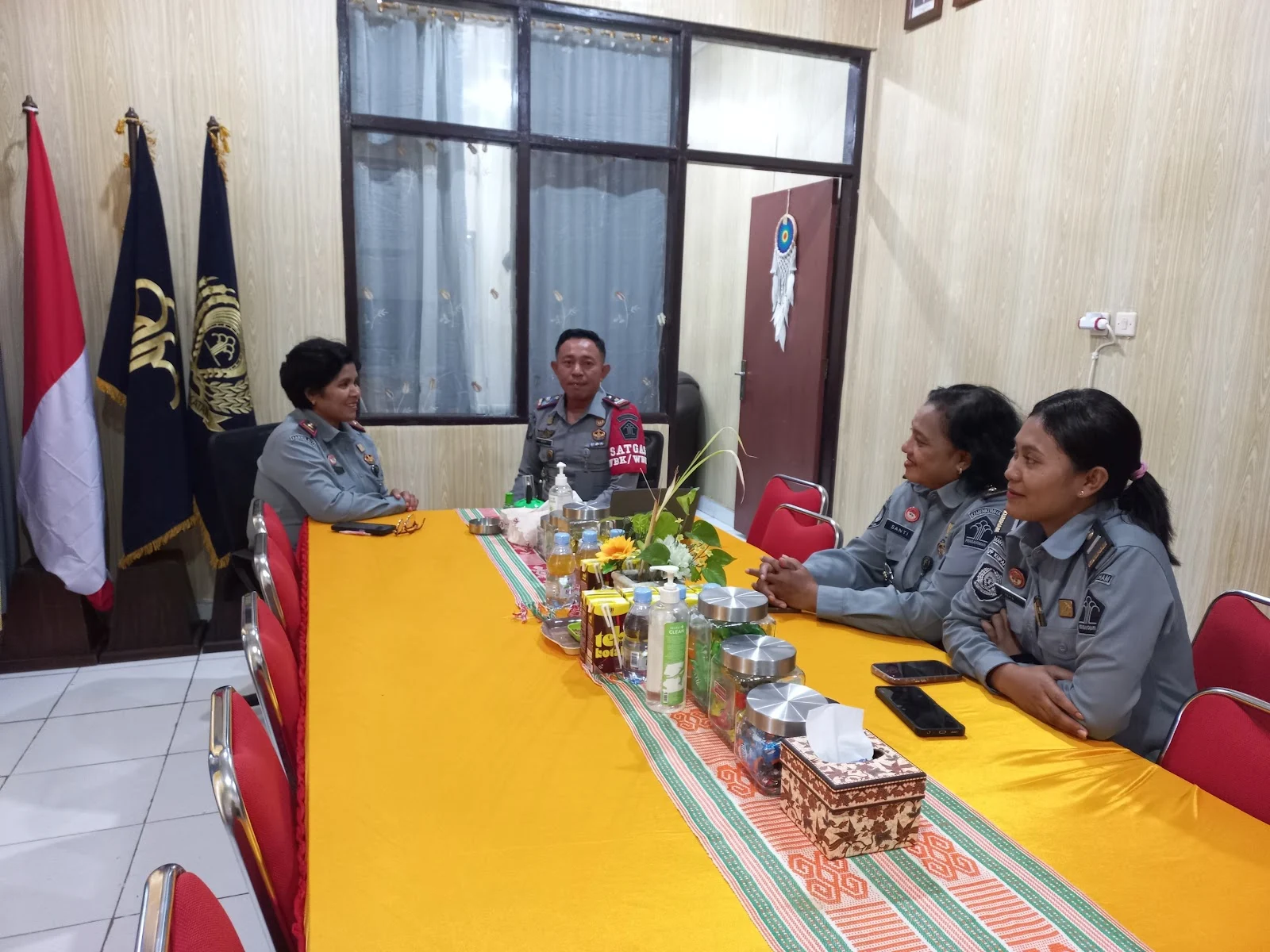 MediaJawa - Dalam rangka berbagi informasi terkait Pelayanan Publik Berbasis Hak Asasi Manusia (P2HAM), Kepala Rumah Penyimpanan Benda Sitaan Negara (Karupbasan) Kelas I Kupang, Sahid Andriyanto Arief, menerima kunjungan studi tiru dari Kepala Balai Pemasyarakatan (Kabapas) Kelas II Kupang, Maria M. Nahak, beserta jajaran, Selasa (14/05).